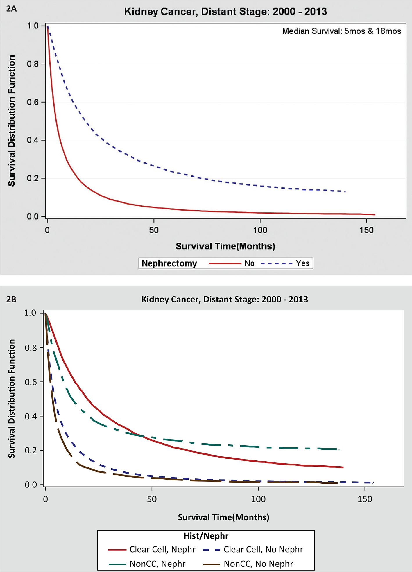 National population registry represented by the SEER database shows that the majority of patients (63%) with metastatic RCC do not undergo CN. Nephrectomy still represents a significant factor that predicts for improved OS outcome in advanced RCC within population databases such as SEER and NCDB. Median OS of 3 months in the non-CN group and that of 18 months for cases with CN suggests the large magnitude of the disparity. Patient demographics and tumor characteristics make a significant impact on the incidence of CN. The impact of comorbidities (number and type) appeared to be modest within the population represented in the Metropolitan Detroit SEER data and was not statistically significant. The optimal management strategy of patients with advanced RCC unable to undergo nephrectomy needs to be prospectively evaluated in future clinical trials, in the setting of contemporary systemic therapy.