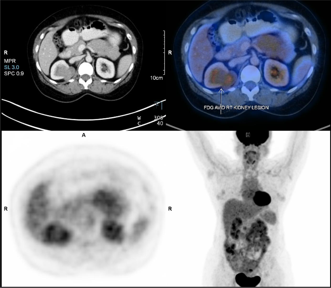 Figure 2: FDG PET CT showing uptake in the right renal mass.