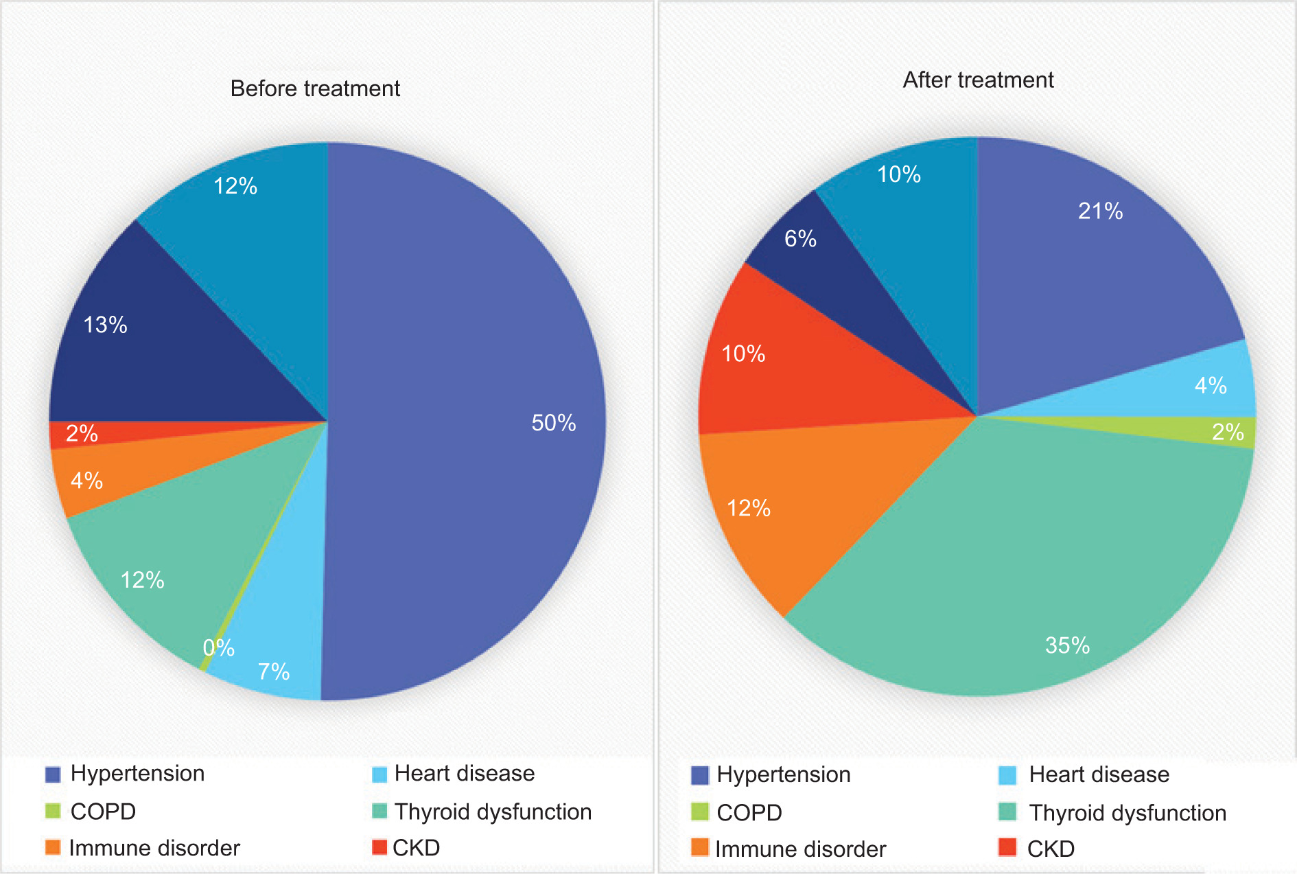 | Htn/DM/Cardiac/Other (worsened after treatment) | 56/12/10/90 | 20/5/4/32 |