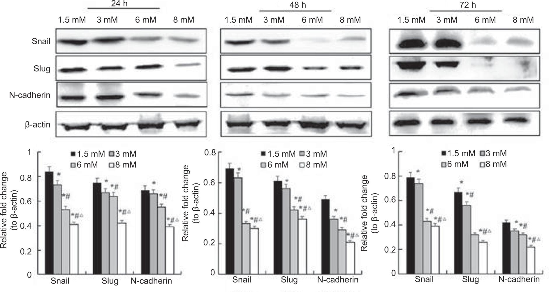 Figure 6: Western blot analysis the protein expression of epithelial-mesenchymal transition marker Snail, Slug and N-cadher in A498 cell.